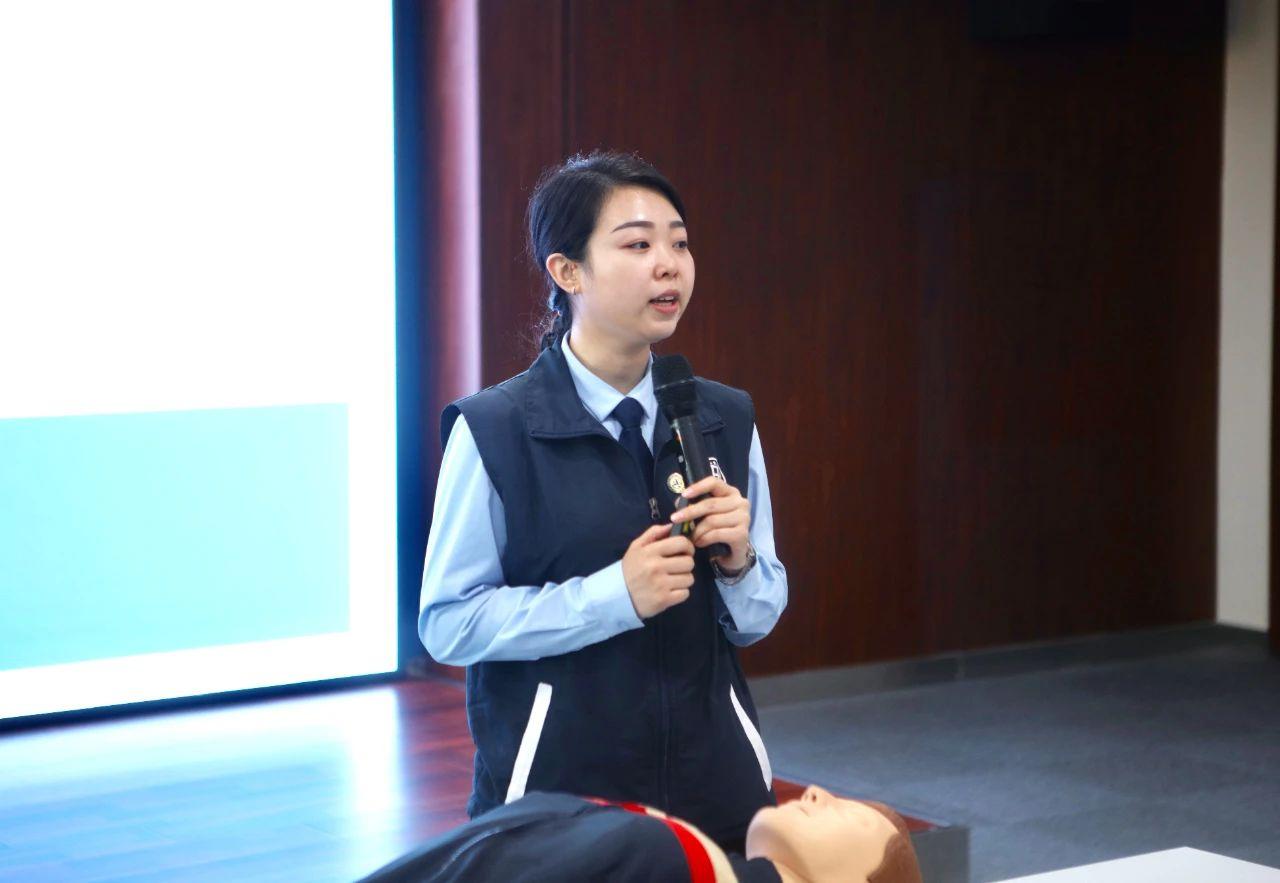 本次培训邀请到讲师:赵若君。高级健康管理师,安全健康教育网宣教科主任,从事健康宣教工作多年,具有丰富的健康医学知识及授课经验。赵若君主任详细讲解了相关知识,并“手把手”为大家演示了急救的具体细节,使参加培训的教职员工们真正熟练掌握了这些生死攸关的“绝技”。